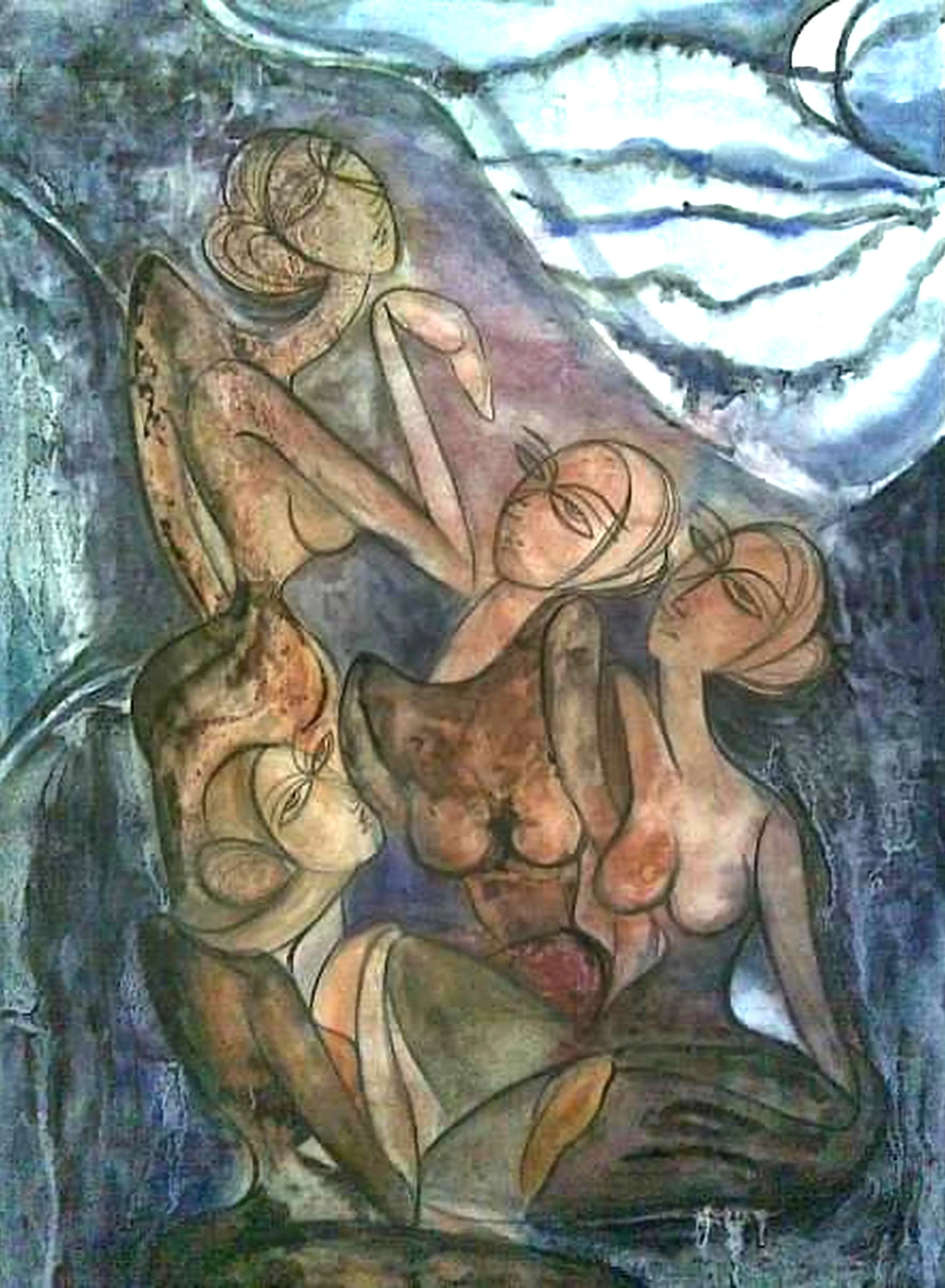 "Moonlight Mourning" Anamika Shabnam. Watercolor (wash technique) on paper. 76x56 cm. 2014.